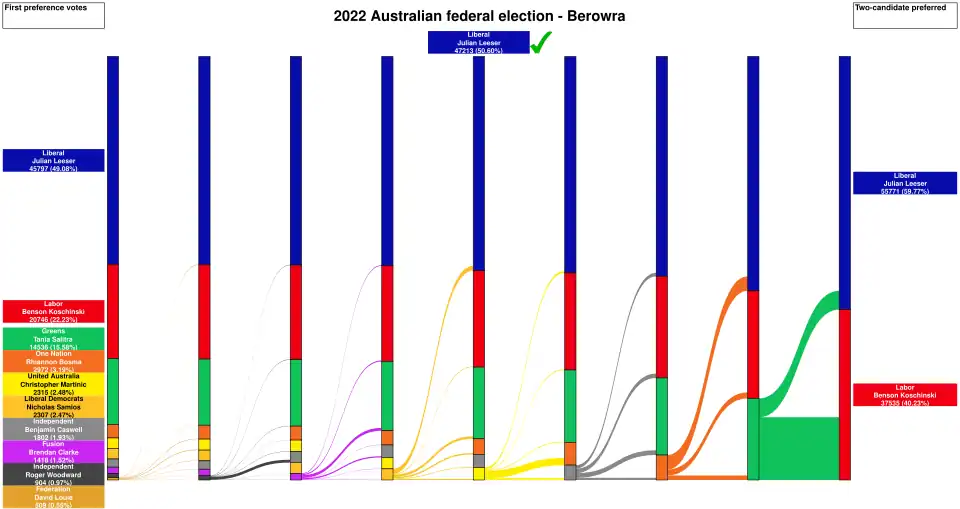 - ^ Berowra, NSW, 2022 Tally Room, Australian Electoral Commission.