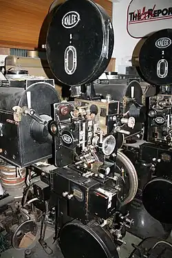 The Electric Palace opened with a single projector, probably a Kalee. Soon after a Gaumont machine was provided as a standby. In those days films were short and it was not necessary to use two machines together to allow feature-length films to be shown.[13]