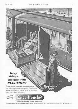 Electric platform trucks are electric powered trucks with a large flat surface for holding objects to be transported. Some are also called warehouse utility vehicles, electric trolley carts, or powered platform truck vehicles.[1] Electric platform trucks can vary greatly in size, from large ride-on utility vehicles, to much smaller pedestrian operated trolleys. Electric tugs can be combined with nonpowered carts or hand trucks to achieve the same result.