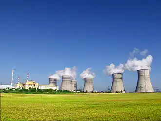 Ukraine operates four nuclear power plants with 15 reactors located in Volhynia and South Ukraine.[38] The total installed nuclear power capacity is over 13 GWe, ranking 7th in the world in 2020.[39] Energoatom, a Ukrainian state enterprise, operates all four active nuclear power stations in Ukraine.[40] In 2019, nuclear power supplied over 20% of Ukraine's energy.[41]
