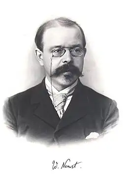 Walther Hermann Nernst developed the theory of the electromotive force of the voltaic cell in 1888. In 1889, he showed how the characteristics of the voltage produced could be used to calculate the free energy change in the chemical reaction producing the voltage. He constructed an equation, known as Nernst equation, which related the voltage of a cell to its properties.[16]