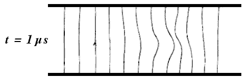 The electrothermal instability occurs extremely quickly, in a few microseconds. The plasma becomes non-homogeneous, transformed into alternating layers of high free electron and poor free electron densities. Visually the plasma appears stratified, as a "pile of plates".
