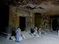 Smaller shrines are located at the east and west ends of the caves. The eastern sanctuary serves as a ceremonial entrance, and its shrine shows iconography of Shaktism tradition.[21][2]