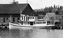 Elfin was built at Pontiac, on the north side of Sand Point, on Lake Washington in 1891. The vessel was 54.5 feet (16.61 m)[1] ( or 60 feet (18.29 m))[2]) long, with a beam of 13.5 feet (4.11 m). Power was provided by a two-cylinder compound steam engine. The builder was Edward.F. Lee. The first owner was Capt. Frank Curtis, whose prior vessel, the Squak, had been sunk in a storm during Christmas, 1890.[2] The vessel was launched in April 1891. Other steamers on the lake, Kirkland, and Mary Kraft brought spectators to the launching.[2]