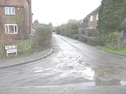 Passenger services between Canterbury West and Lyminge were withdrawn on 1 December 1940 and the line was placed under military control.[1] Two rail-mounted 12-inch howitzers were stationed at Elham during the war. The track had to be strengthened to cope with the recoil when the guns were fired.[7] The station remained open to freight during the war. Military control was relinquished on 19 February 1945. In 1946 the line was reopened for goods traffic but a year later this service ceased and the Elham Valley Railway closed on 1 October 1947.[8] The station building was demolished in 1964.[9] After closure the station building was demolished but one platform still exists forming a retaining wall of a garden for a house now built on the station site.