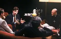 ![]() Rosenbaum (left) on television discussion program After Dark in 1987 (more here) | |
