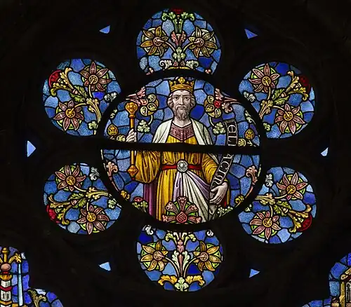 ![]() Elikim in stained glass window: The Tree of Jesse, 1934 (detail), by Gustave Ladon. North transept, Church of Our Lady of Pamele, Oudenaarde, East Flanders, Belgium | |