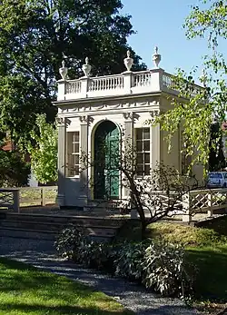The eldest daughter of Derby and his wife, Elizabeth, married (eloped with) Captain Nathaniel West of Salem. Their marriage ended unusually in an ugly, very public divorce in 1806 (West v. West). After being awarded a great sum of alimony, Elizabeth Derby West moved to Danvers. There she had inherited Oak Hill, a country seat from her father. (More than a century later the North Shore Mall was developed here.)