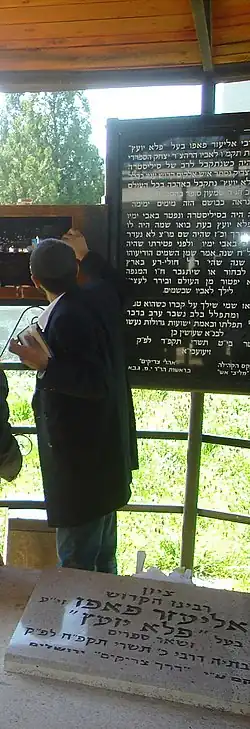 His grave is up to the present day a focus of pilgrimage by observant Jews, some of whom fly especially from Israel and even from Latin America to Bulgaria for that purpose.[2]