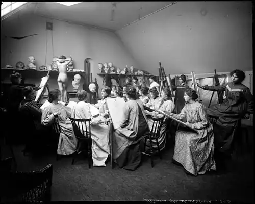 Althins målarskola (Caleb Althin's school of painting) in Stockholm. Photo from 1903. 4th from the right is Elin Wallin, born Lundberg (1884–1969).