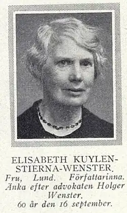 - ^ "Elisabeth Kuylenstierna-Wenster". Svenskt översättarlexikon. Retrieved 5 April 2019 – via litteraturbanken.se.