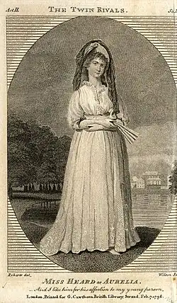Elizabeth Heard (born c.1775) was an English stage actress. She was born in London the daughter of William Heard, a physician and playwright, and his wife Ann Heard, an actress. Elizabeth made her stage debut at the Theatre Royal, Drury Lane as a child actor in 1782, where he mother was employed. She often played young male roles such as the Duke of York in Richard III and Prince Arthur in King John. As well as appearing as a member of the company at Drury Lane, she also began summer stints at the Haymarket from 1789 gradually playing more mature and important roles.[1] In 1801 she left the Drury Lane company and later acted in Newcastle.[2]