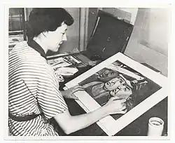 Elizabeth Olds (December 10, 1896 – March 4, 1991)[1] was an American artist known for her work in developing silkscreen as a fine arts medium.[2] She was a painter and illustrator, but is primarily known as a printmaker, using silkscreen, woodcut, lithography processes. In 1926, she became the first woman honored with the Guggenheim Fellowship.[3] She studied under George Luks,[4] was a Social Realist,[2] and worked for the Public Works of Art Project and Federal Art Project during the Great Depression. In her later career, Olds wrote and illustrated six children's books.[5]