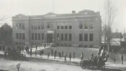 The second Elizabethtown High School building was built in 1914 at a cost of $23,000. It opened in 1915, and in 1923 a gymnasium and auditorium was added to the school building at a cost of $20,000.[7] In 1955, the school was destroyed by a boiler explosion.[8] The land it was on is currently the city hall parking lot.