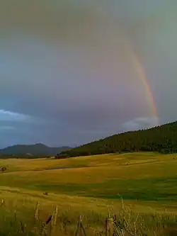 Elk Meadow Park is a park and trail system[1] in Evergreen, Colorado managed by Jefferson County Open Space. This program began acquiring these ranchlands in 1977 to create the extensive protected area, which is made larger by adjacent public lands. Contiguous to Elk Meadow Park on the west is Bergen Peak Park, a "conservation/wilderness" area that is part of the Denver Mountain Parks system. Through a cooperative effort between the two park management entities, the Too Long Trail in Elk Meadow Park continues to Bergen Peak, at 9,708 ft (2959 m). Noble Meadow, a conservation easement adjacent to Elk Meadow Park on the northwest along Mestaa'ėhehe Road (formerly Squaw Pass Road), has no public access. The Bergen Peak Wildlife Area, managed by Colorado Parks and Wildlife, is next to the Park's southwestern boundary.