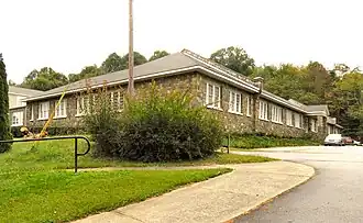 Elk Park School is a historic school building located at Elk Park, Avery County, North Carolina. It was built between 1935 and 1938 by the Works Progress Administration. It is a one-story, E-shaped Rustic Revival-style stone building. It measures 16 bays wide and has a large gymnasium ell. A one-story, concrete block cafeteria addition was built in 1951. Scenes from the 1974 movie "Where The Lilies Bloom" were filmed in Elk Park School, and children from the elementary school appeared as extras in those scenes. It remained in use as a school until the end of the 20th century, then converted in 2004 to apartments.[2]