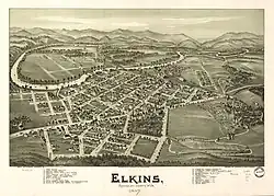 Elkins is a city in Randolph County, West Virginia, United States, and its county seat. The population was 6,950 at the 2020 census.[4] It lies along the Tygart Valley River and was incorporated in 1890, taking its name from Stephen B. Elkins, the city's co-founder and later U.S. Senator from West Virginia.[6] Elkins is home to Davis and Elkins College and the Mountain State Forest Festival, held in early October every year.[7]