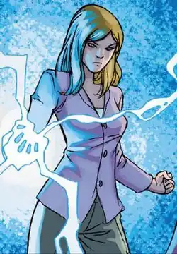 Elle has the ability to generate and manipulate electricity, discharging and directing it as electrical arcs. She has been shown being able to weld a lock, blast objects, knock people unconscious, and even kill a man. She is not entirely immune to the electricity she produces, however, as shown when she is drenched in water and attempts to create electricity—she gives herself an electric shock, causing great pain.[7][10]