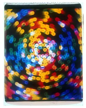 "Photography Degree Zero"[57] comprises Carey's experimental, darkroom-less work using a large-format Polaroid 20 x 24 camera, which explores the possibilities of minimalist photography.[43][51][58] These images—made without reference to a subject—defy fundamental expectations of "picture taking" through an image-making technique that she discovered, which exploits random developing emulsion flows by pulling the film from the camera (the "Pulls" series) and interrupting the dye-transfer process; in other cases, she rolls back the film, creating multiple exposures ("Rollbacks"), or mixes incompatible emulsions or developer to manipulate the process.[59][60][61]
