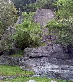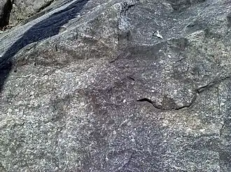 The Ellicott City Granodiorite is a Silurian or Ordovician granitic pluton in Howard and Baltimore Counties, Maryland. It is described as a biotite granodiorite along the margin of the intrusion which grades into a quartz monzonite in its core.[2] It intrudes through the Wissahickon Formation and the Baltimore Gabbro Complex.