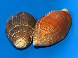 | Shells of Ellobium aurismidae from Bangka Island (left) and New Guinea (right) at the Museo Civico di Storia Naturale di Milano | |