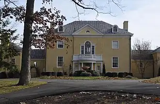 Ellwood, also known as Leeland and the Lawrence Lee House, is a historic home located near Leesburg, Loudoun County, Virginia. It was designed by architect Waddy Butler Wood (1869–1944) and built in 1911–1912. It is a 2+1⁄2-story, Colonial Revival style mansion with a five-part symmetrical plan consisting of a main block with a hipped slate roof connected by hyphens to one- story wings with hipped slate roofs. The house sits on a rise just above the American Civil War fort, Fort Johnston, which at one time was part of the estate. The house was designed for Lawrence Rust Lee, who was related to the prominent Rust and Lee families of Leesburg. Also on the property are the contributing garage and wood / meat house.[3] In the 1980s it was home to Lyndon LaRouche, who named it "Ibykus Farm" after a work by Friedrich Schiller.[3]