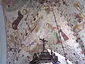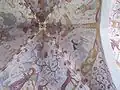 The most comprehensive wallpainting work was in fact carried out by the Elmelunde Master presenting a variety of scenes from the story of the Creation and the New Testament but also with illustrations of everyday activities such as ploughing and hunting. Between the paintings, margins with frills depicting flowers, plants and other ornaments can be seen. The figures all have sleepy faces, a characteristic of the Elmelund Master. Colours include black, ochre, caput mortuum, and cinnabar which has now faded to verdigris.[3]