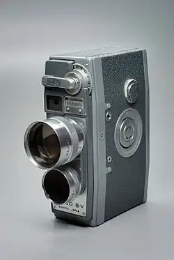 Production resumed quickly after the war ended, and in January 1946, the Elmo company was one of the 17 founding members of the Optical and Precision Instruments Manufacturers' Association (光学精機工業協会, Kōgaku Seiki Kōgyō Kyōkai).[5] The company was incorporated as K.K. Elmo-sha (エルモ社, "Elmo Co., Ltd.") in 1949. It continued making the Elmoflex until the second half of the 1950s, then dropped the production of still cameras. ELMO then continued producing 8mm products, introducing new Super 8 projectors and cameras to meet the then-new format. It was however not until the 1970s that the company would release its most famous products, namely their ST and GS-series of Super 8 projectors, including the GS-800, GS-1200 and ST-1200HD, the three of which often are regarded as the company's crown jewels in terms of projectors. As home video took its toll on the Super 8 scene, ELMO ceased production of their projectors, with the final models being the GS-1200 P Xenon and P Com in 1983.[6] Following this, the company began making CCD cameras in 1984,[1] introduced the EV-308 document camera in 1988,[7] and in the late 90s moved into educational technical equipment.
