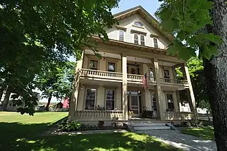 The Elms was built in 1859 by the A. C. Denison Company, and operated as the Eagle Hotel, with a reported capacity of forty rooms. A. C. Denison took over the property as his private residence in 1870. By 1887 it had again been opened as a hotel, this time as the "Hotel Elms". The building has had a long association with the paper mill (which stands just to the north).[2] The building currently houses an antiques and crafts shop.
