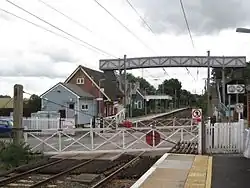 Elsenham station was opened in 1845 and retains its original layout with staggered platforms on either side of a level crossing.