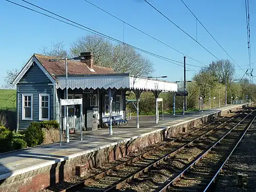 Elsenham railway station is found on the West Anglia Main Line, serving the village of Elsenham in Essex, England. It is 35 miles 45 chains (57.2 km) down the line from London Liverpool Street, and is situated between Stansted Mountfitchet and Newport stations. Its three-letter station code is ESM.