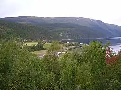 The highest point in the municipality was the 1,348-metre (4,423 ft) tall mountain Lukttinden on the border with Drevja Municipality.[1]