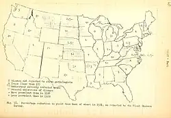 In 1917, Stakman and Piemeisel were the first to determine that varieties of P. graminis tritici could be categorized into different physiological strains or races, affecting different varieties of host plants. In 1937, Stakman crossed P. graminis tritici and P. graminis secalis and determined that while most hybrids resembled the tritici parent, some were intermediate between rye and wheat forms.[1] The discover that rusts were evolving new strains that could infect plants resistant to previous strains of rust led to a counter-strategy, breeding and deploying new varieties of rust‐resistant wheat before new strains of wheat rust could spread.[3][8] In 1940, Stakman and coworkers established that spores travel long distances and are carried by wind. They showed that urediospores of P. graminis tritici were carried from as far away as Mexico and Texas to Canada and North Dakota, over 2000 miles, affecting early-sown wheat.[1]