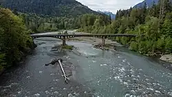 ![]() U.S. Route 101 crossing the Elwha River with Mount Fairchild in the background | |