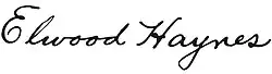 Haynes was born on October 14, 1857, in Portland, Indiana, the fifth of ten children of Jacob M. Haynes and Hilinda S. Haines Haynes. His family was of English descent; he was a ninth-generation descendant of Walter Haynes who immigrated from Wiltshire, England to Sudbury, Massachusetts in 1638. His father was Jay County's school commissioner, a lawyer, Whig politician, and a judge of the Jay and Randolph County common pleas court.[1] Both of Haynes' parents were dedicated Presbyterians and outspoken prohibitionists and educated their children from a young age to avoid liquor. His mother was the founder of a local Women's Temperance Movement Union.[2] His paternal grandfather Henry Haynes was a gunsmith and mechanic, and tutored Haynes about metallurgy.[3] In 1866, the family moved from their two-room house in Portland into the countryside outside of town where they purchased a larger home to better accommodate their growing number of children.[1][4]