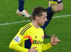 He made his debut on 17 August, in a 1–0 defeat at home to Fulham.[10] In his second match of the campaign, he scored a headed goal as Sunderland drew 1–1 away to Southampton on 24 August.[11] His first cup goal came on 24 September 2013 in a 2–0 League Cup win against Peterborough.[12] His second league goal, came in the following game at home to Liverpool, on 29 September 2013. He was the first to react as Simon Mignolet spilled a Ki Sung-yueng shot, and finished from six yards.[13] On 22 February 2014 Giaccherini scored his fourth goal from a 25-yard shot in a 4–1 loss against Arsenal.[14]