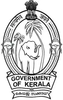 The Emblem of Kerala[1] is the official seal used by the Government of Kerala to represent the State of Kerala in all its official correspondences. The emblem portrays two elephants guarding the state emblem of India and the Shankh of Sri Padmanabhaswamy according to the history of Kerala.