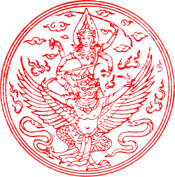 King Rama VI was the first to regulate the use of the Garuda emblem by the government through legislation in 1911.[20] The use of the Garuda emblem was further regulated in an Act on the Garuda Emblem in 1991. A penalty for the misuse and misrepresentation of the Garuda was set to; imprisonment of no longer than one year, or a fine of between three and six thousand Baht, or both.[24] In 2001 the Office of the Prime Minister issued a guideline outlining the use of the emblem. The document recommended that the Garuda should be treated with respect as it is considered a sacred symbol.[25]