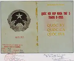 | Adopted | 30 November 1955 (D.R. Vietnam) 2 July 1976 (S.R. Vietnam; current version) |