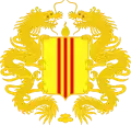 Variant coat of arms of the French protectorate of Annam.[25] | A golden five-clawed dragon positioned affronté. Influences: | |
