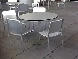 Emeco was sold that year to Jay Buchbinder who tried unsuccessfully to revive the military end of the business.[3] Buchbinder's son, Gregg, acquired Emeco from his father in 1998.[8] He noticed that Giorgio Armani and other designers showed an interest in the 1006 chair,[9] so he decided to focus on those and similar products.[6][10] In 1999 the company posted a profit for the first time in more than 20 years.[3] Gregg met French designer Philippe Starck at the 1998 International Contemporary Furniture Fair (ICFF)[11] and the two agreed to collaborate on numerous designer versions of the 1006 Navy chair.[12] By 2004 these accounted for half of Emeco's production, or 46,500 chairs per year.[8]