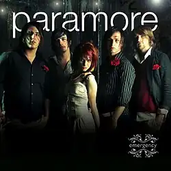 "Emergency" is a song by American rock band Paramore. It was released on October 21, 2005, as the second single from their debut studio album, All We Know Is Falling. It was released on 7" vinyl in the United Kingdom on August 26, 2006, and contained the B-side "Oh, Star," and a poster of the band. The song was written by Hayley Williams and Josh Farro. It failed to chart in the United States, however, it was released in Kerrang!s "Class of '06" compilation CD, calling it one of the best rock tracks of that year. An alternative post-hardcore version of the song, providing a heavier sound and screamed vocals, was released on The Summer Tic EP in 2006.