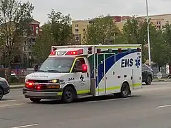 EMS services in Canada are generally funded, at least in part, and to varying degrees, by the Ministry of Health or Health Department of the province or territory in which they operate. Paramedics and ambulance services are not mentioned in the Canada Health Act, and are therefore not an insured service. Provinces may choose to subsidize some of the cost, usually just for patients with valid provincial health cards. Health insurance in Canada is universal and publicly funded, so the cost of emergency ambulance services is covered to some degree. The degree to which individual use of EMS is subsidized by provincial health insurance varies by province, and may be supplemented either by partial fees for service, or by the property tax revenues of municipalities operating such services. In some jurisdictions, funding is at 100 per cent,[24] and occurs without the patient being aware of its existence. Other jurisdictions fund at varying levels, but may require payment up front. In most cases this is later reimbursed.[25] This may be particularly true of out of jurisdiction services, with an individual from one province who requires EMS service in another province being required to pay for that service and then submit the receipt to their own provincial health insurance scheme for reimbursement. In some jurisdictions, such as Ontario, a deterrent fee scheme is used to discourage the medically unnecessary use of EMS by the public. In such cases, the provincial health insurance scheme pays the majority of the cost of EMS service (around 80 per cent) for medically necessary EMS service, but when a physician decides that the service was not medically necessary, they can cause the patient to pay the full, uninsured amount of the charge,[26] with the patient receiving a bill for the additional deterrent fee at some point after the emergency is over. Within Ontario, for example, such deterrent billing occurs through the receiving hospital, despite the fact that the hospital neither provides nor oversees EMS in most cases.