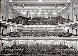 The Emery Theatre, or Emery Auditorium, is a historic, acoustically exceptional[1] theater located in the Over-the-Rhine neighborhood of Cincinnati, Ohio. The building was constructed in 1911 as the home for a trade school (the Ohio Mechanics Institute), but its large auditorium was intended for public use. The design of the Emery Theatre is based on the "isacoustic curve" principles that were first proposed by John Scott Russell.[2] The theatre was built with two balconies and a total of 2,211 seats. It was one of the first concert halls in the United States to have no obstructed seats.[2]