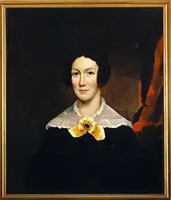 In 1829, she gave birth to her and Edward's first son, Austin Dickinson. One year later, she, Edward, and Austin moved to the Homestead (now the Emily Dickinson Museum), where their daughters Emily and Lavinia were born.[8] Her husband's busy career as a lawyer and as the treasurer of nearby Amherst College meant that she often stayed home with her children, which made her often feel isolated and lonely.[9] In 1855, she endured a particularly troubling period of depression.[8] She spent most of her time at home, either taking care of her household or tending her garden, which was her biggest passion in life. She suffered a stroke in 1874 from which she never truly recovered, and spent the remainder of her years paralyzed until her death in November 1882.[8]