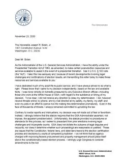 - ^ Jankowicz, Mia (November 24, 2020). "The letter enabling Biden's transition goes to extreme lengths to avoid saying he beat Trump and won the election". Business Insider. Archived from the original on November 25, 2020. Retrieved November 25, 2020.
