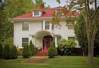 The Emma J. Harvat and Mary E. Stach House, also known as the De Saint Victor House, was the home of Emma J. Harvat, who was the first female mayor of Iowa City, Iowa and the first female leader of a U.S. city with a population greater than 10,000. Harvat was a successful businesswoman who had become financially independent and retired to Iowa City at the age of 43. After arriving there she became partner in another business venture with Mary (May) Stach, establishing Harvat and Stach to sell women's clothing. Harvat and Stach had the house on Davenport Street built for them in 1919. The house was designed by Iowa City architect Orville H. Carpenter, incorporating a variety of historical revival styles, dominated by Colonial Revival.[2]
