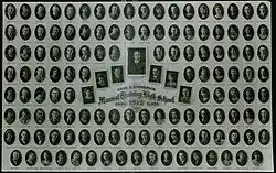 Groundbreaking was held on August 2, 1951, with the laying of the cornerstone on August 21 of the following year. In the spring of 1952, the school board responded to requests by the high school's supporters to build the auditorium, and two months later awarded a $600,000 construction contract.[15] The entire new facility was dedicated on May 24, 1954, with the first classes being held that fall with 1,734 students.[16]