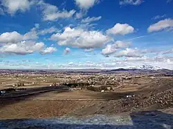 Emmett is a town on the southern bank of the Payette River that grew up around a ferry crossing of the Payette River. Emmett was originally called Martinsville, named after Nathaniel Martin who, along with Jonathan Smith, built the ferry crossing.[6] Next, the name was changed to "Emmettville," because it was primarily a post office named after Emmett Cahalan, the son of Tom Cahalan, an early settler of the area. The post office was later moved but the town retained the name. A few years later the "ville" was dropped and the post office and town became simply Emmett. In 1883 James Wardwell had the town platted, and in 1900 the town was incorporated as Emmett. Later, in March 1902, the Idaho Northern railroad came to the valley.[7]