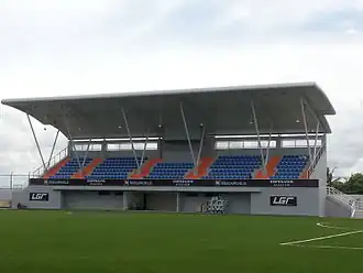 McKinley Hill Stadium sits on a 15,000 m2 (160,000 sq ft) land in McKinley Hill, Barangay Pinagsama, Taguig. The stadium has an artificial pitch and a seating capacity of 2,000.[3] The pitch measures 97 m × 60 m (318 ft × 197 ft), short of the FIFA recommended standard of 105 m × 68 m (344 ft × 223 ft).[7]